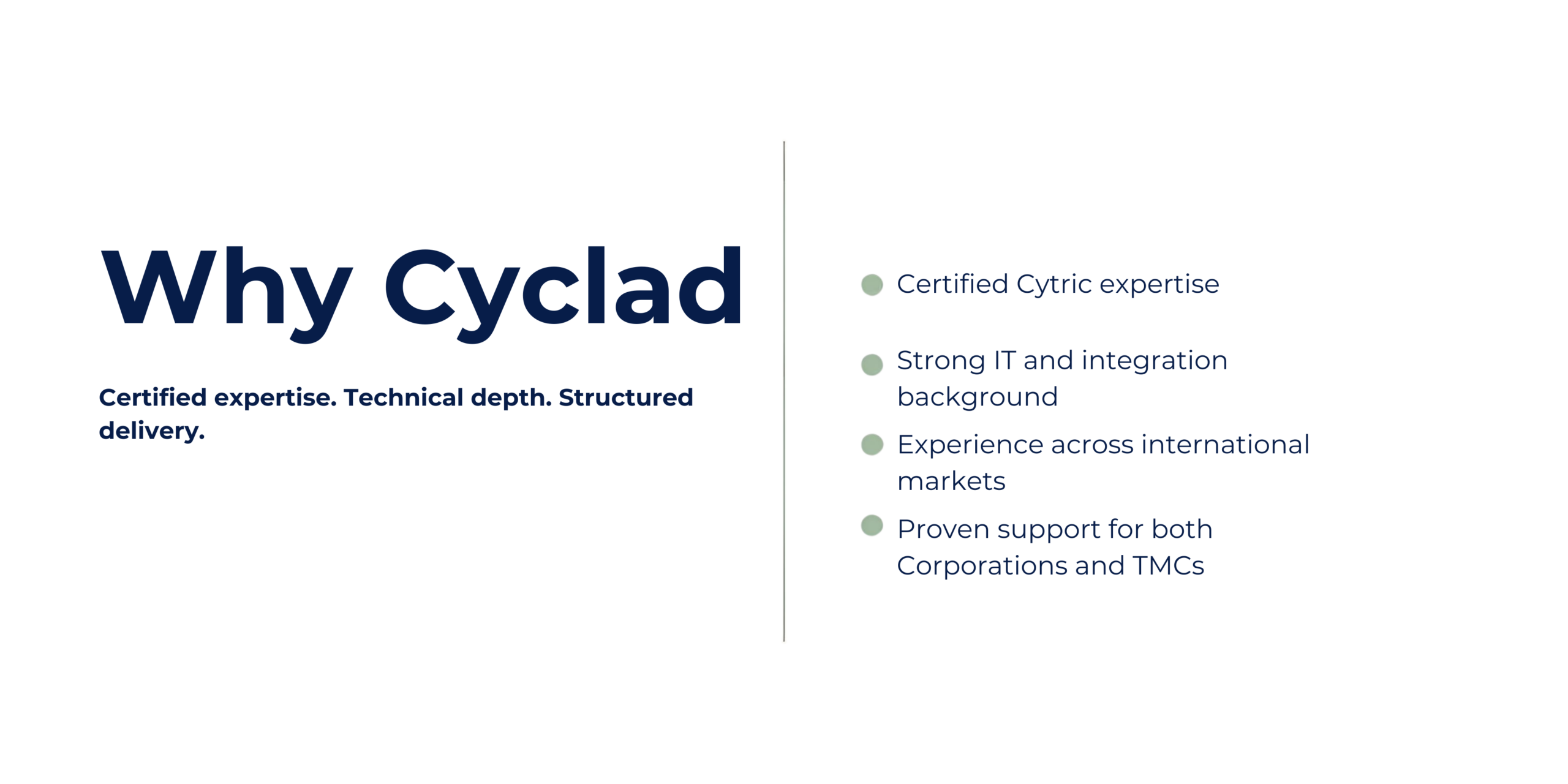 Whether you are a Corporation or a TMC, our certified Cytric specialists can help you improve configuration, integration and adoption performance.